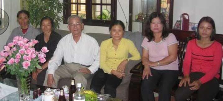 Từ trái sang phải: chị Rề (vợ anh Lê Văn Túc), chị Lộc (vợ sắp cưới của anh Nguyễn Kim Nhàn), Ts. Nguyễn Thanh Giang, chị Mai (vợ anh Vũ Hùng), chị Nga (vợ anh Nguyễn Xuân Nghĩa), chị Trang (vợ anh Phạm Văn Trội )