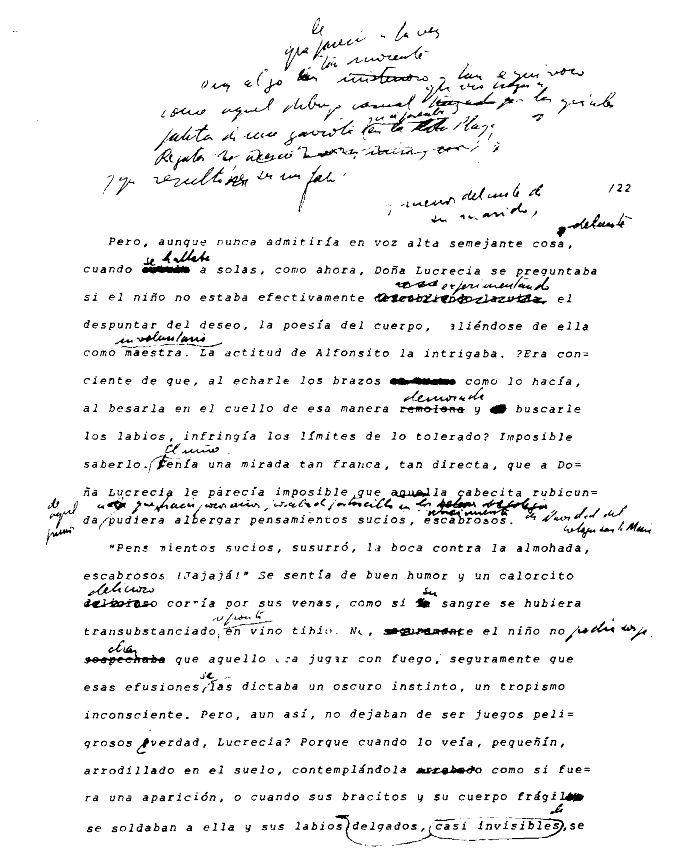 Một trang bản thảo tiểu thuyết Elogio de la madrastra [“Ca ngợi bà kế mẫu” (1990)] của Mario Vargas Llosa: http://tienve.org/home/images/llosa-m.gif Ng