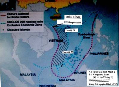 Từ tháng 7/2010, sau khi bà ngoại trưởng Hillary Clinton công bố chính sách xem sự tự do lưu thông trên Biển Đông là quyền lợi sinh tử của Hoa Kỳ, Trung quốc đã tỏ ra bất bình và bắt đầu áp dụng mọi biện pháp để áp đặt quyền ưu tiên của mình trên Biển Đông .