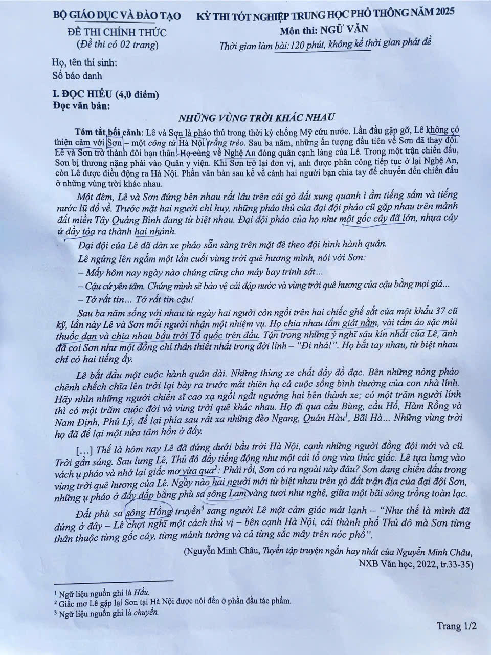 Đề thi tốt nghiệp THPT năm 2025 môn Ngữ văn.
