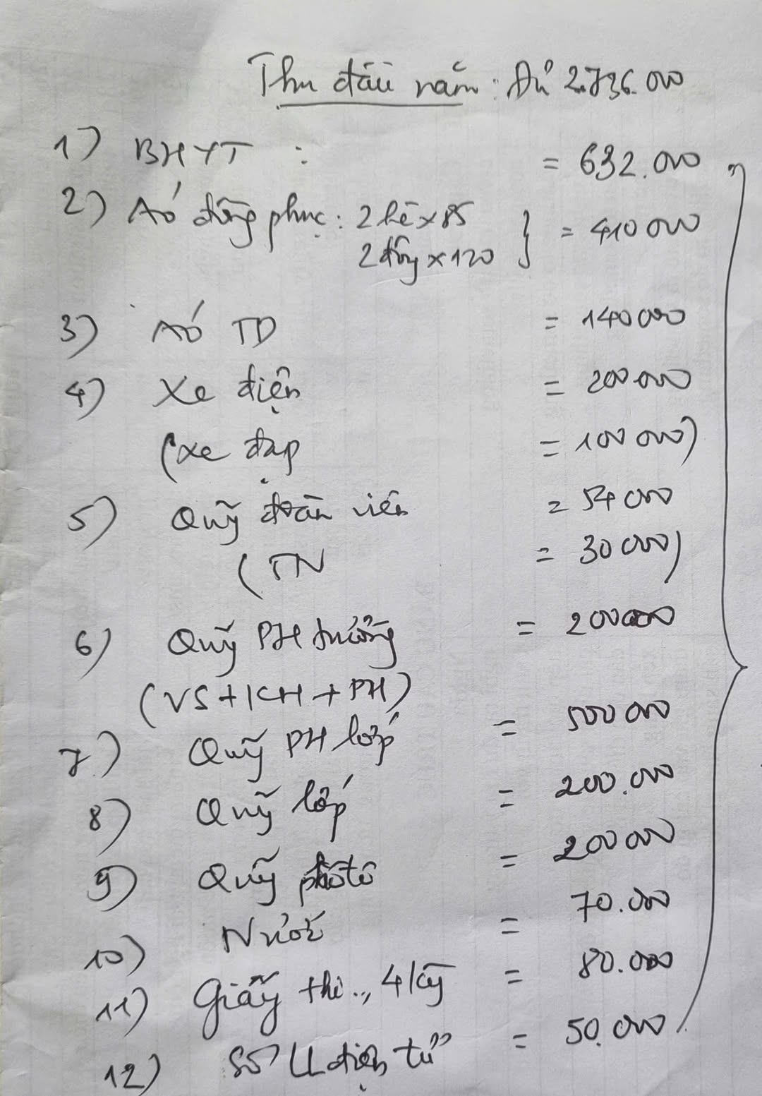 Đó là ví dụ mà tôi lấy từ trường hợp trường THPT Tĩnh Gia II (Thanh Hóa). Chỉ với 4 loại quỹ, gồm quỹ phụ huynh trường (200k), quỹ phụ huynh lớp (500k), quỹ lớp (200k), quỹ photo (200k), mỗi học sinh phải nộp 1,1 triệu đồng (một triệu mốt), trong khi nếu đóng học phí thì như năm học 2024-2025 cũng chỉ 650.000đ/học sinh/năm, nghĩa là gần gấp đôi tiền học phí!