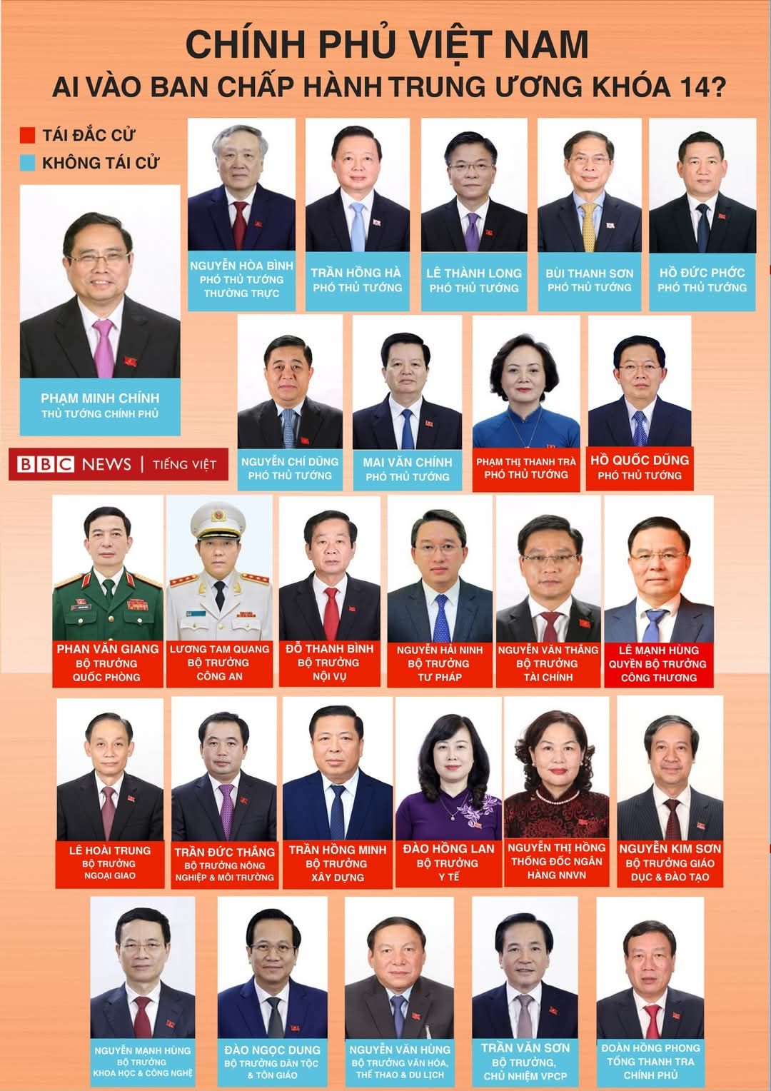 Thủ tướng Phạm Minh Chính cùng với 7 phó và 5 bộ trưởng không có mặt trong danh sách UVTW. Nguồn: BBC