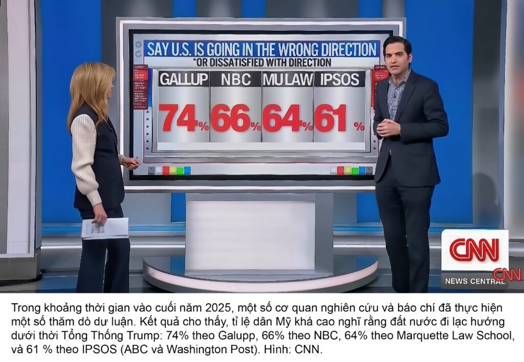 nước đi lạc hướng dưới thời Tổng Thống Trump: 74% theo Galupp, 66% theo NBC,