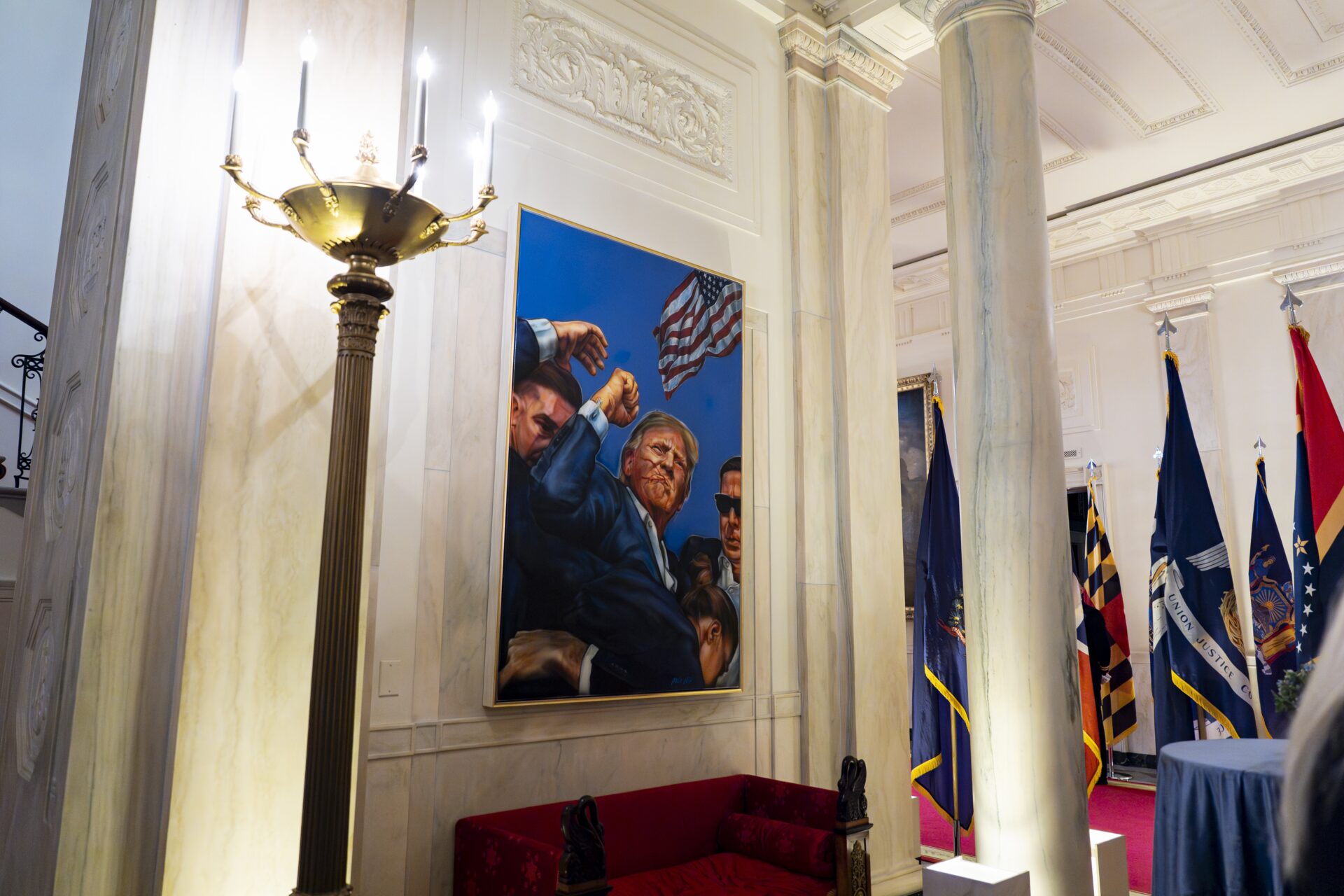 tranh vẽ lại cảnh ông Trump bị ám sát ở Butler, Pennsylvania, được treo trong