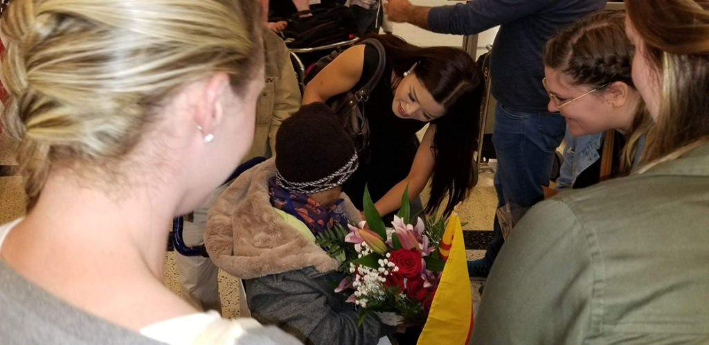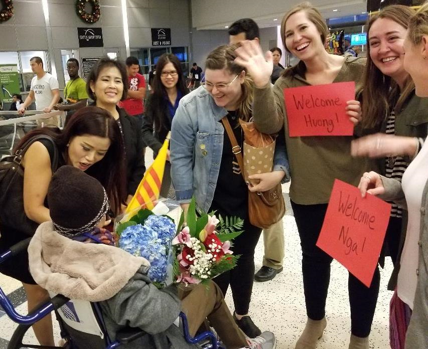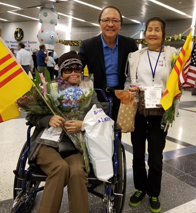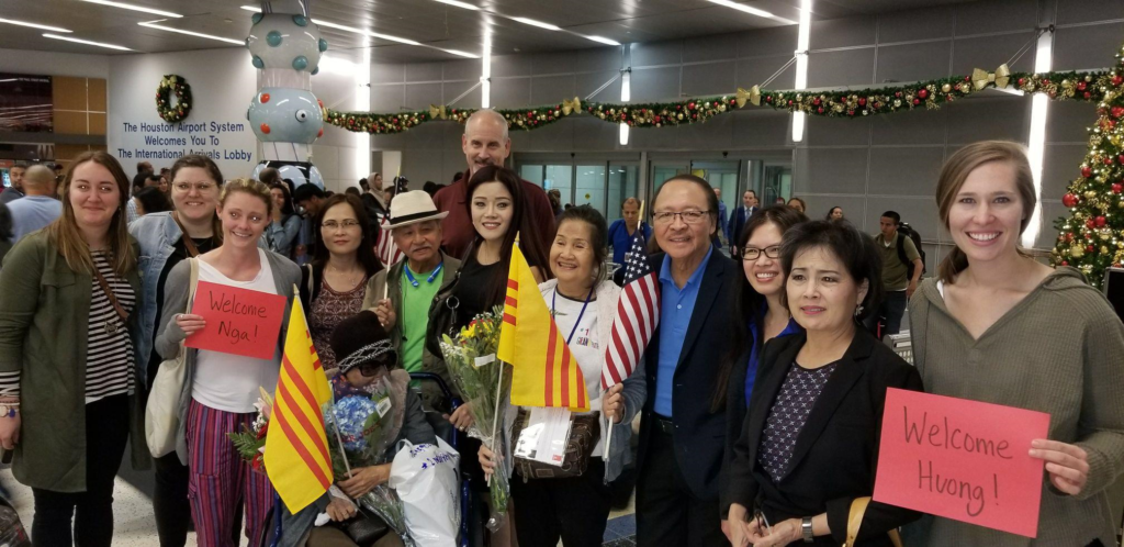 ra tận cửa phi trường quốc tế Houston đón tiếp trong tình thương, với những tấm