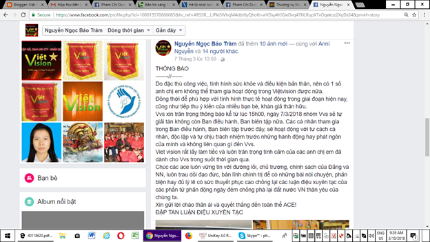 15h00, ngày 7/3/2018 nhóm Vvs sẻ tự giải tán không còn Ban điều hành, Ban biên