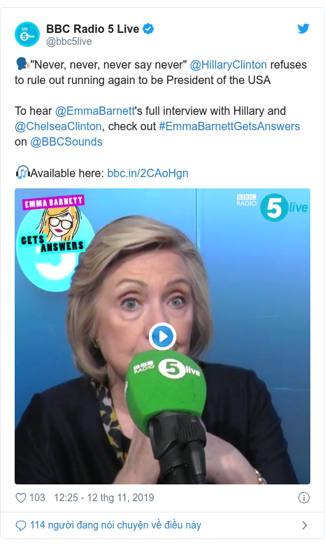 Emma Barnett khi đang ở Anh trong một chuyến đi quảng bá sách, bà Clinton được