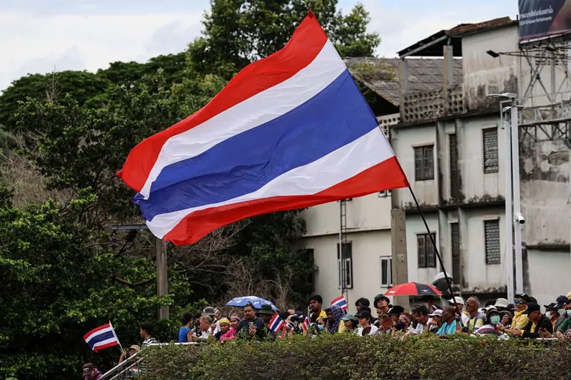 chính tại Tượng đài Chiến thắng. Nhiều người tham gia vẫy quốc kỳ Thái Lan như