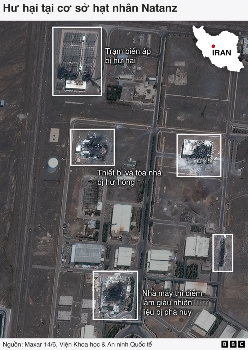 hại mà Israel gây ra cho Iran tại hai địa điểm hạt nhân quan trọng của nước này