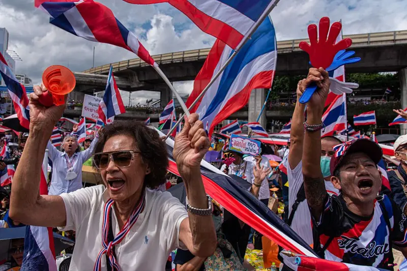 cùng nhau hô vang khẩu hiệu kêu gọi bà Paetongtarn từ chức.
