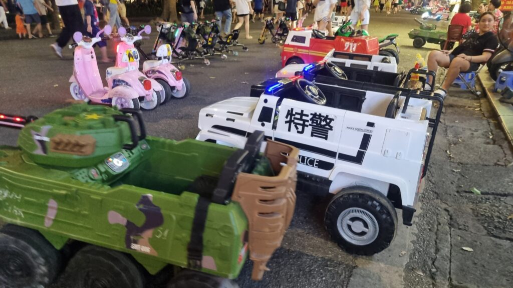 xe cảnh sát xe cứu hoả v.v… của Trung Quốc tràn lan lòng đường.