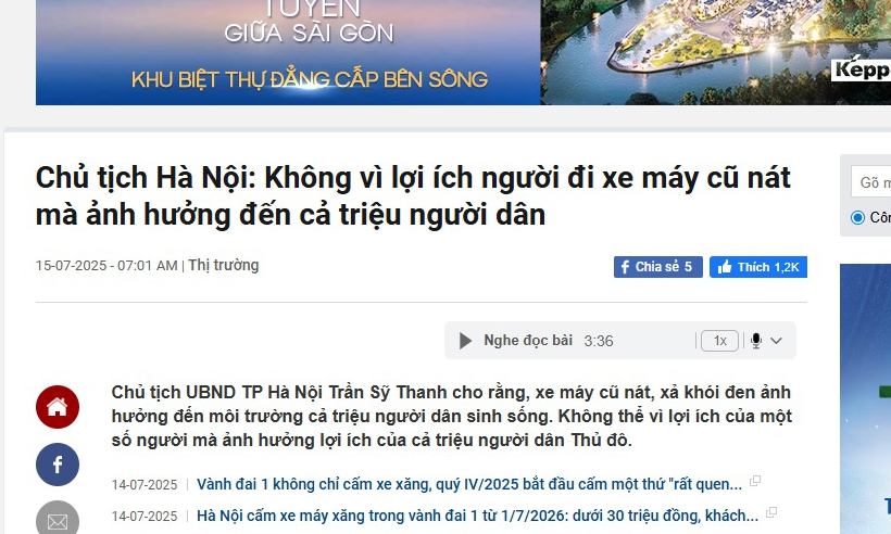 Trước hết, xin dẫn lời từ báo chí: “Chủ tịch UBND TP Hà Nội Trần Sỹ Thanh cho rằng, xe máy cũ nát, xả khói đen ảnh hưởng đến môi trường cả triệu người dân sinh sống. Không thể vì lợi ích của một số người mà ảnh hưởng lợi ích của cả triệu người dân Thủ đô“.