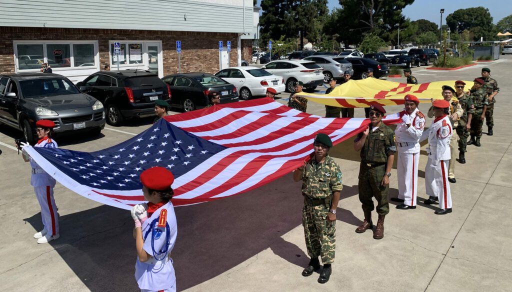 Duệ Quân Lực VNCH trang trọng rước hai đại kỳ Hoa Kỳ và VNCH tiến vào vị trí