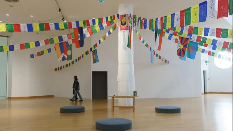 phẩm nghệ thuật sắp đặt của nghệ sĩ Tây Tạng Tenzin Mingyur Paldron nơi cờ Tây