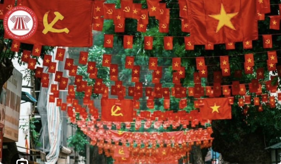 giữa những biển cờ ấy lại chen chúc vô số cờ búa liềm. Một biểu tượng mà ở nhiều