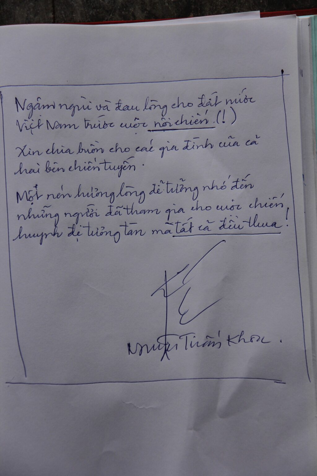 sổ lưu niệm để ghi nhận những suy nghĩ về chiến tranh của một phía. Dòng lưu niệm