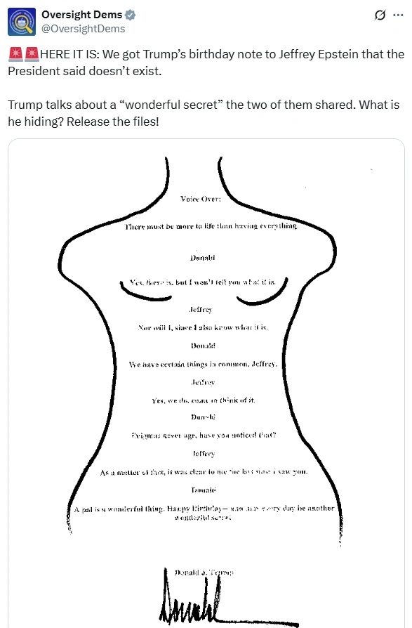 nghị sĩ Dân chủ đã công bố hình ảnh tấm thiệp mừng sinh nhật trên mạng xã hội X