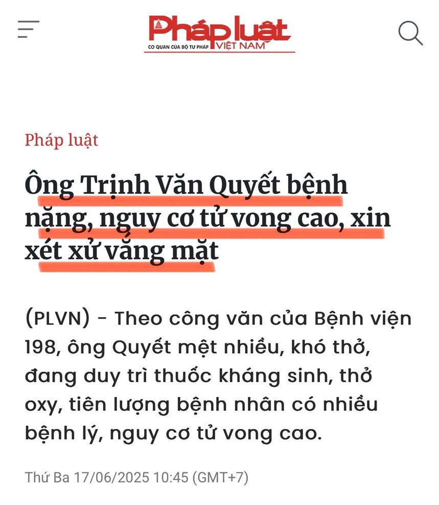 chụp màn hình bài đăng trên báo PLVN ngày 17-6-2025, chỉ 4 tháng trước khi ông