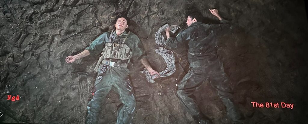 Cao trào của bộ phim nằm ở hình ảnh chiếc khăn rằn bị cắt làm đôi trong một trận giao tranh sinh tử giữa Cường và Quang. Đó không chỉ là hành động điện ảnh, mà là một ẩn dụ sâu sắc: Đất nước Việt Nam bị chia cắt bởi vĩ tuyến 17, bởi dòng sông Thạch Hãn đỏ máu, bởi những hàng rào chiến tuyến tưởng chừng không thể vượt qua. Một chiếc khăn vốn để sưởi ấm tình yêu, giờ bị chia lìa như chính vận mệnh của Tổ quốc. Một mảnh thuộc về Cường, một mảnh rơi vào tay Quang như để nói rằng ở cả hai phía, vẫn là những người con Việt, cùng mang nỗi đau, cùng khao khát đoàn tụ.