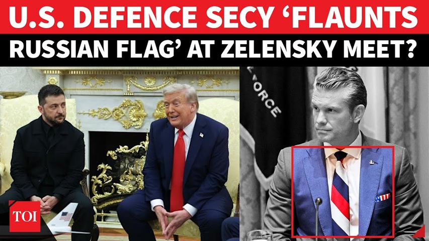 trưởng Quốc phòng Mỹ Pete Hegseth (phải) mang cà vạt có màu cờ Nga trong suốt