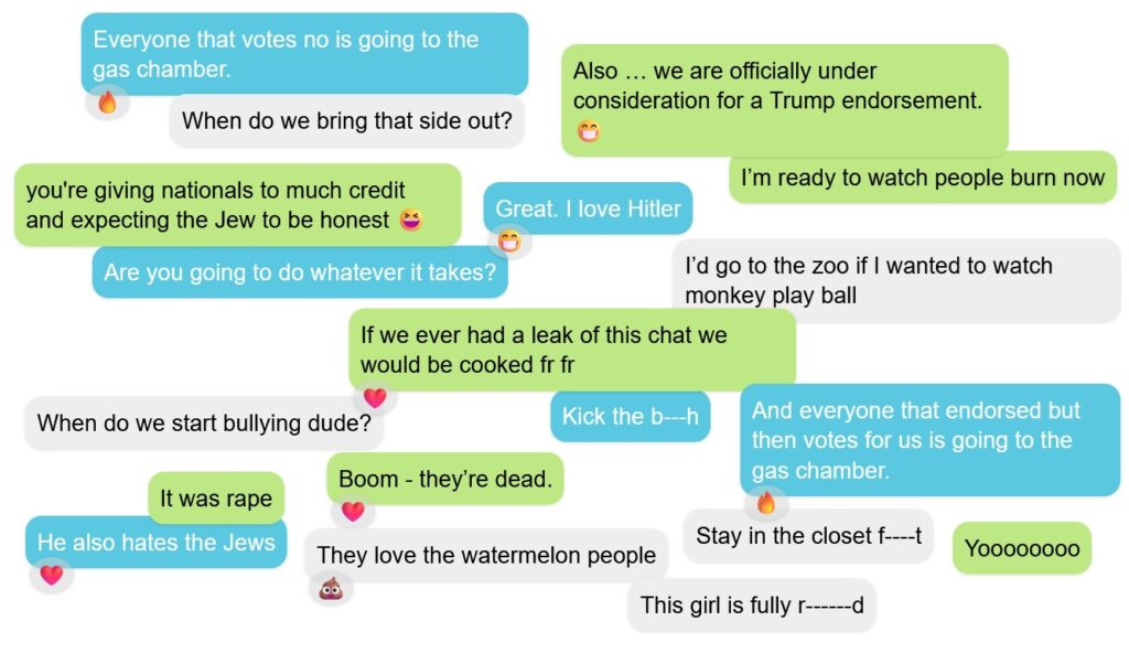 tin nhắn kỳ thị, phân biệt chủng tộc từ các nhóm Cộng hòa Trẻ. Nguồn: Politico