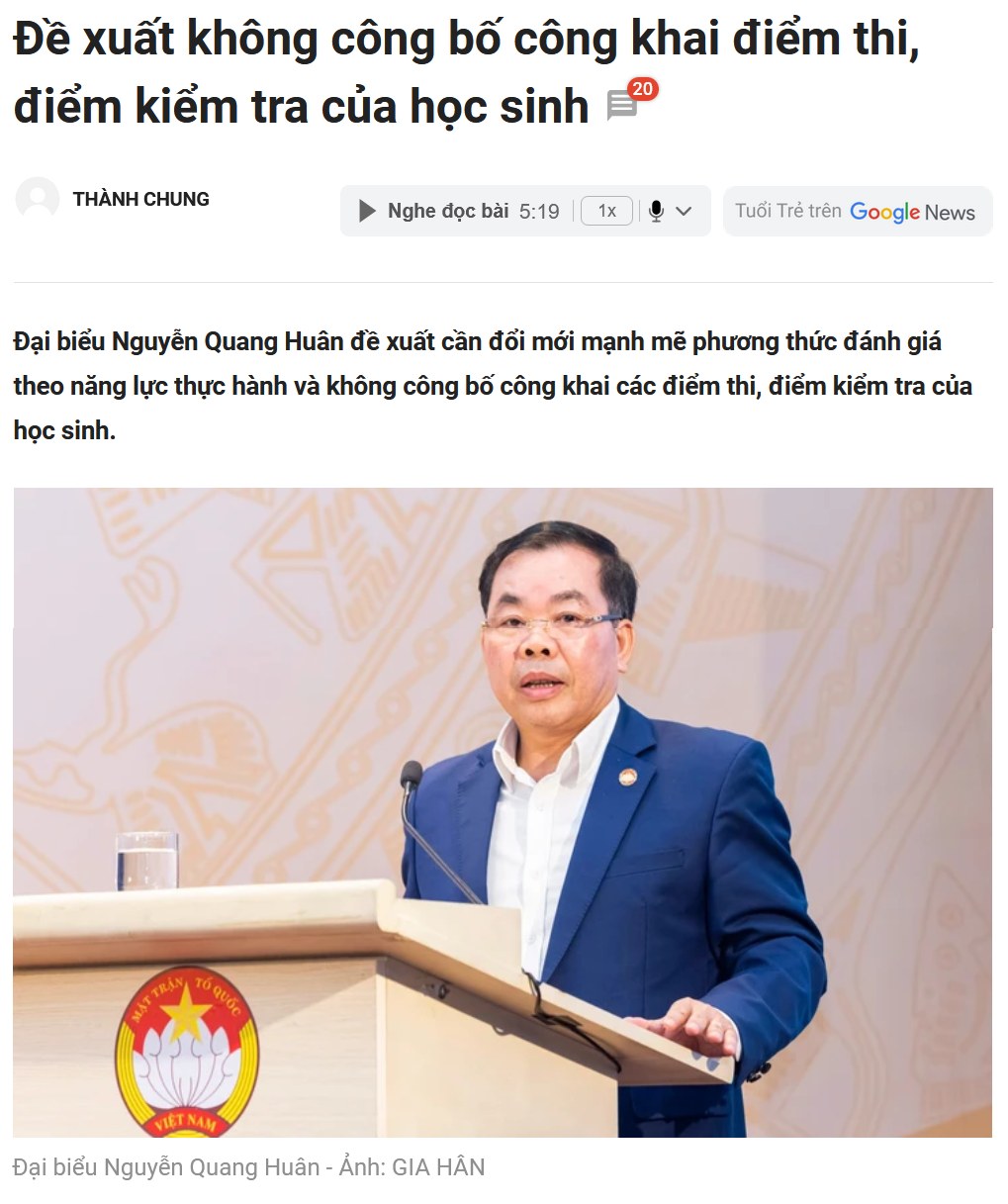 bản thân tôi từ nhiều năm nay cũng luôn nhắc lại rằng cần cấm công khai điểm và