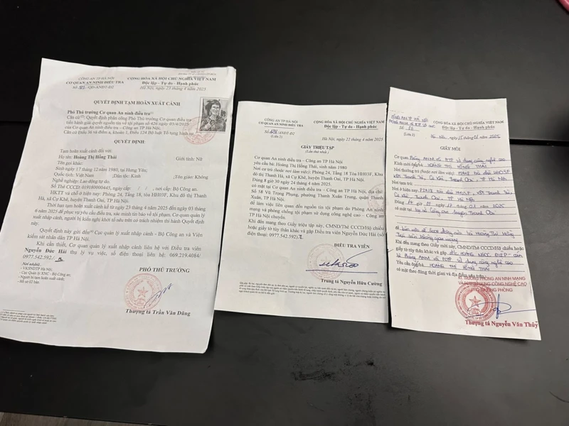 xuất cảnh, giấy triệu tập và giấy mời làm việc.