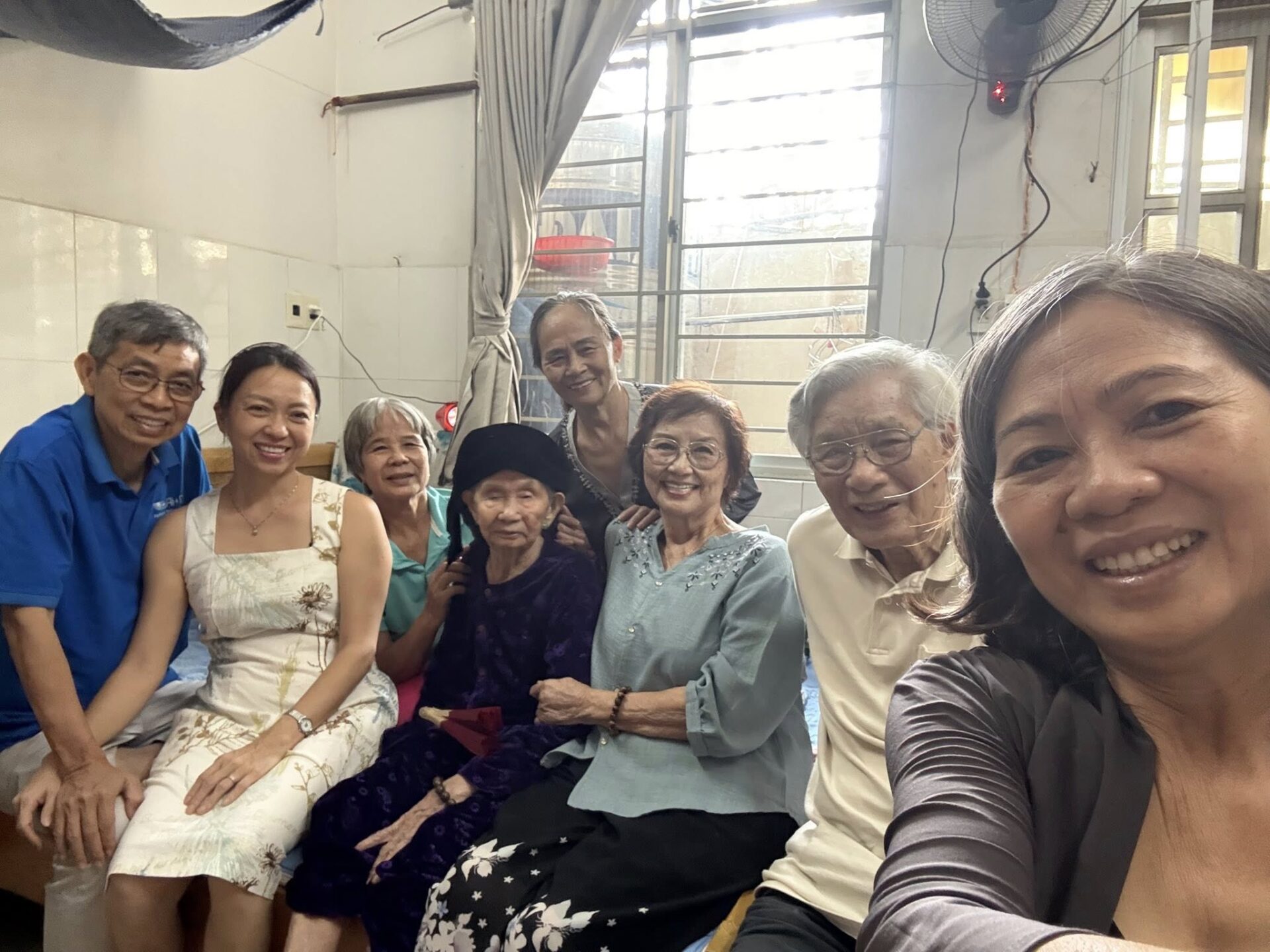 của kỹ sư Trần Bang (bà cụ mặc đồ đen), bên trái cụ là bà Kim Chi (người mang